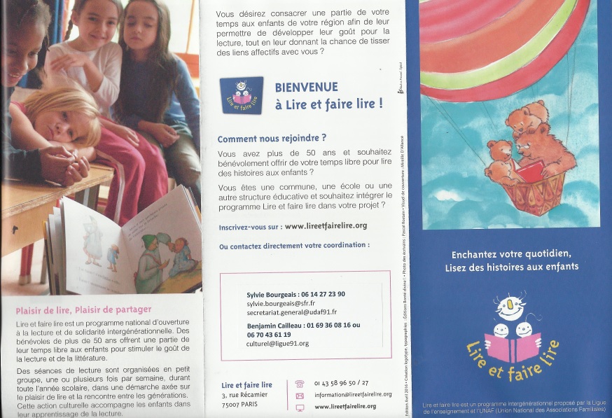 – d’ouverture à la lecture (séances de lecture organisées en petit groupe d’enfants dont l’objectif est de transmettre le plaisir de la lecture)